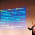 松尾哲矢 先生の講義があり、引き続き松尾先生のコーディネートで、トークセッション:「東京都スポーツ推進企業」がありました。東京都スポーツ推進企業3社から先進事例の紹介も行われました。。